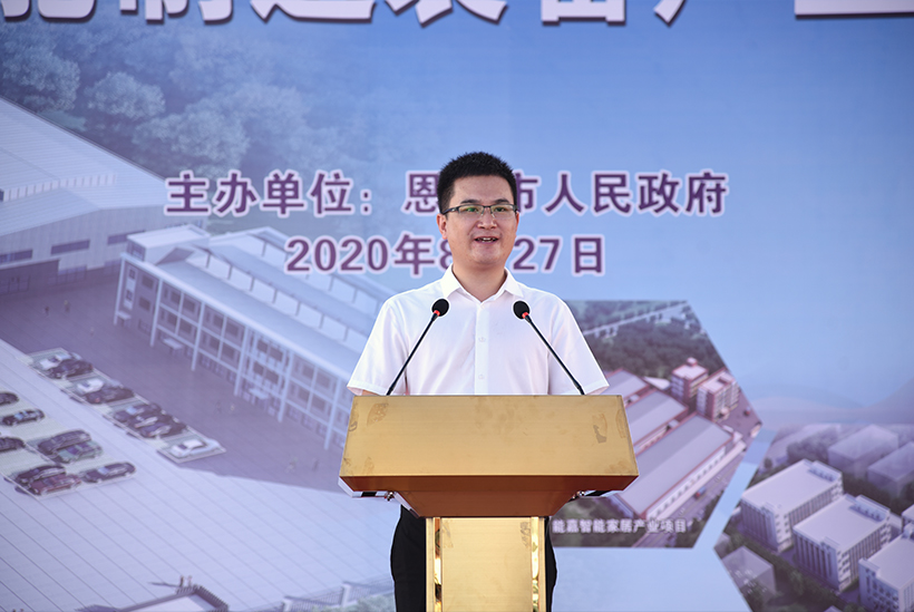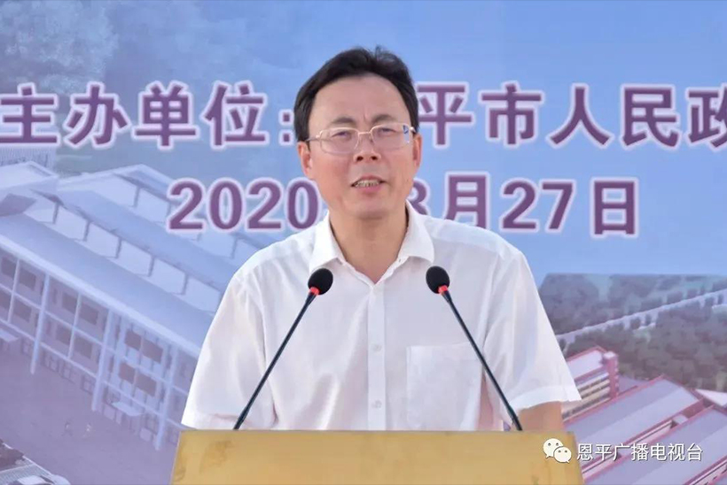杨博董事长讲话表示该项目前期接洽到项目实施,得到了恩平市委市政府、工业园管委会、大槐镇政府和各有关部门的大力支持,顺利签约落户专人专职负责为我们办理各种证照,及时协调解决项目上马过程中遇到的问题,为我们提供了高效优质的服务,进一步坚定了我们在恩平发展的信心和决心。同时强调一定会加快建设、投产见效,在恩平这块沃土实现互利双赢,为恩平经济高质量发展贡献力量。